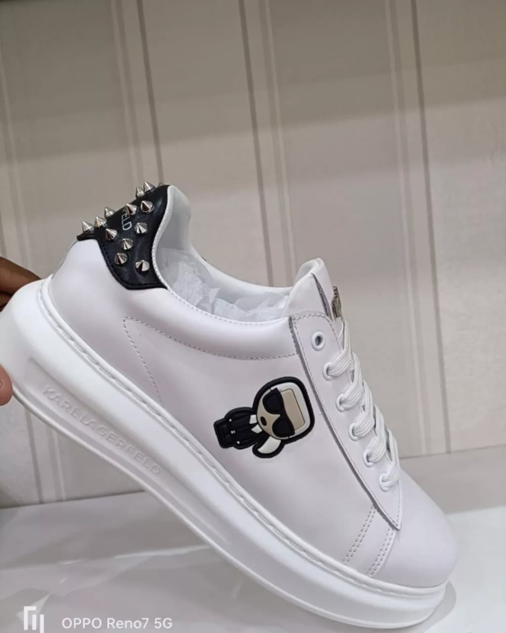 Step into fashion-forward footwear with the Karl Lagerfeld Spike White Heel. The modern spike stud detailing on these heels make a bold statement, while the classic white color makes them easy to pair with your favorite wardrobe pieces. From office meetings to weekend brunches, these heels will keep you looking effortlessly stylish.